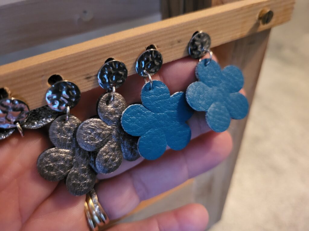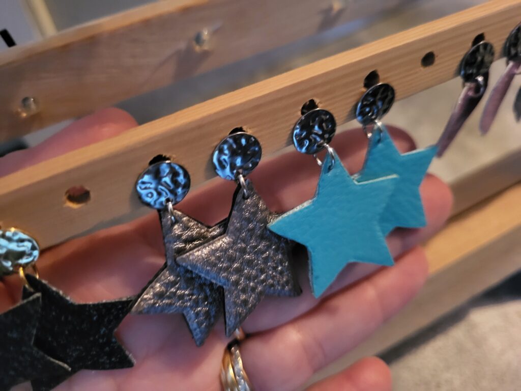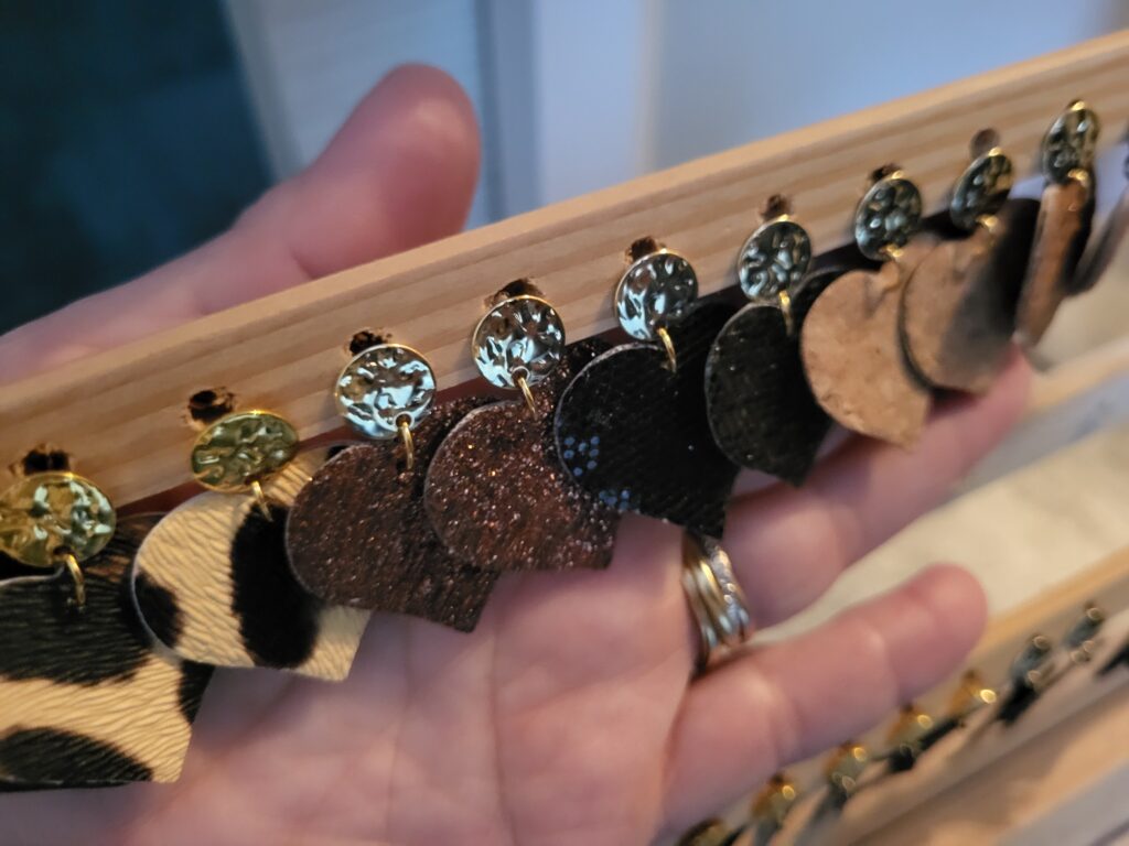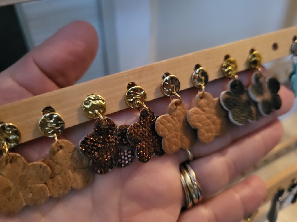 Toutes les boucles d’oreilles sont montées à la main, et sont des modèles uniques.